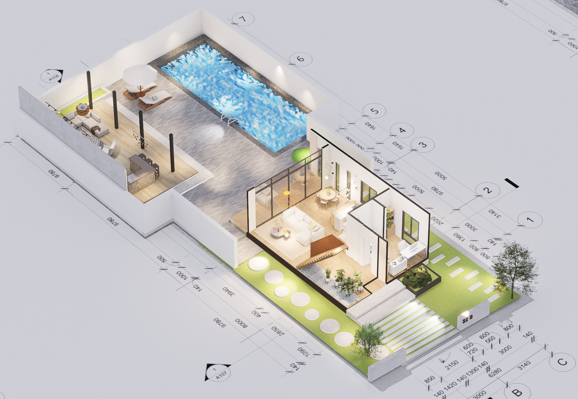 Wake to filtered morning light through tall windows. Brew coffee under the covered terrace. As the day warms, swim in your private pool, pick herbs from the garden, or simply let the breeze pass through the open living space.